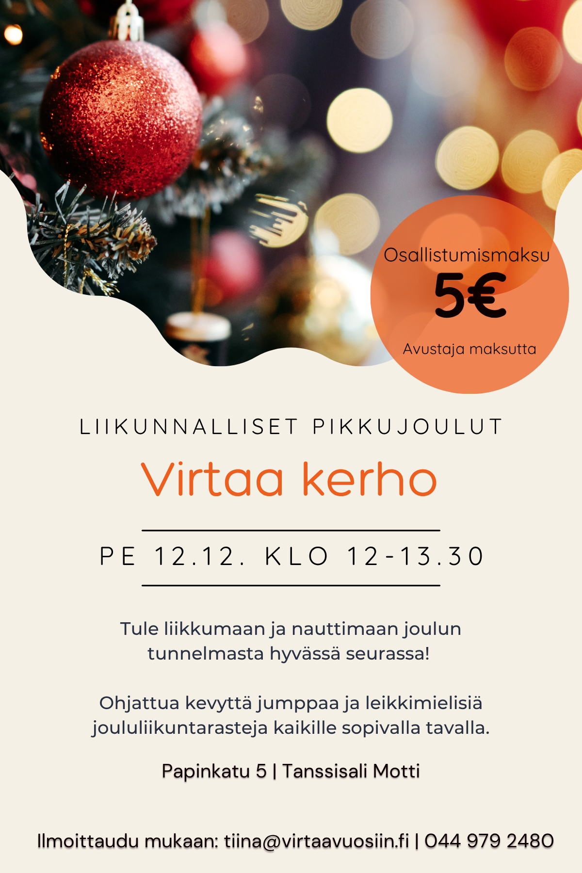 Tervetuloa vuoden ensimmäiseen ja samalla vuoden viimeiseen Virtaa-kerhoon, jossa liike ja joulun ilo kohtaavat!